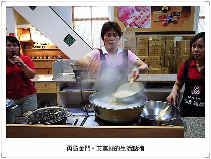 回到金門本島,再吃午餐前,安排參觀馬家麵線的行程,很妙的是,安排再吃午餐之前,是不想讓我們試吃太多嗎?不過店家還是很豪氣的煮了一大鍋麵線讓我們試吃,白煮的麵線搭上可自由選擇馬家各式沾醬,還真不錯吃,要不是等一下還要吃午餐,我還真想多試吃一些。